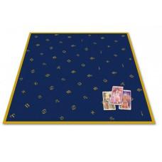 Deep Blue Velvet Tarot Cloth featuring gold astrological symbols, edged with gold satin. Beautiful cloth to use with your tarot speads or can be used as a altar cloth.