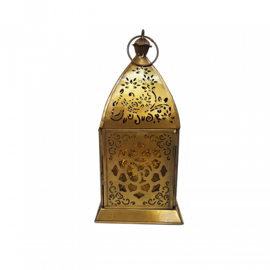 You can place the lantern anywhere in your home, sitting on a table or hang it on a hook anywhere even in the garden. Use a t-light candle inside and it will glow with a golden colour.
